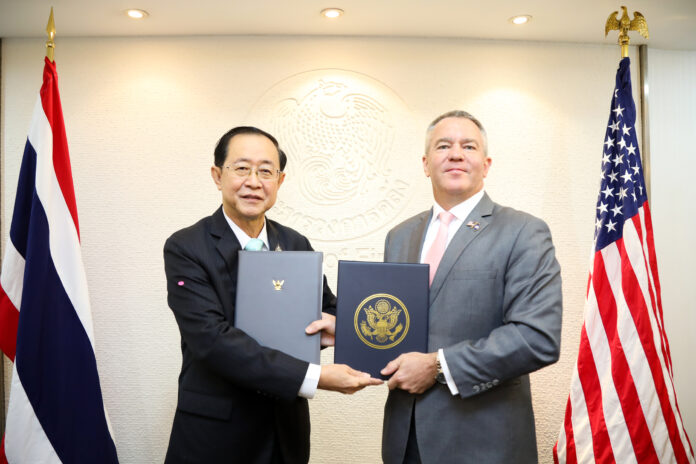 รมว.คลัง แลกเปลี่ยนเอกสารกรอบความร่วมมือเพื่อส่งเสริมการระดมทุนและการสร้างตลาดทุนเพื่อโครงสร้างพื้นฐานไทย – สหรัฐอเมริกา ซึ่งเป็นกรอบความร่วมมือระหว่างกระทรวงการคลังไทยและสหรัฐอเมริกาในการพัฒนาโครงสร้างพื้นฐานไทย