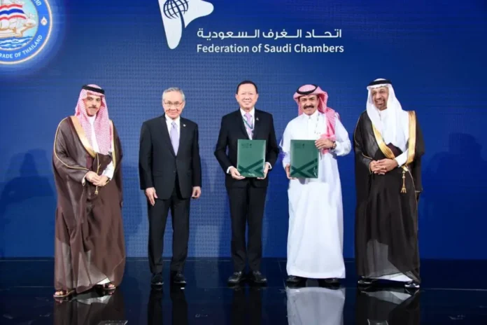 นายสนั่น อังอุบลกุล ประธานกรรมการหอการค้าไทยและสภาหอการค้าแห่งประเทศไทย เปิดเผยว่า เมื่อวานนี้วันที่ 16 พ.ค.กระทรวงการลงทุน ซาอุดีอาระเบีย เป็นเจ้าภาพจัดงาน Saudi-Thai Investment Forum โดยมี Mr. Khalid Abdulaziz Al-Falih รัฐมนตรีว่าการกระทรวงการลงทุนของซาอุดีอาระเบีย ได้เข้าร่วมกล่าวเปิดงาน และยังได้รับเกียรติจาก Prince Faisal bin Farhan Al Saud รัฐมนตรีว่าการกระทรวงต่างประเทศ มาร่วมต้อนรับคณะจากประเทศไทย ที่นำโดย นายดอน ปรมัตถ์วินัย รองนายกรัฐมนตรี และรัฐมนตรีว่าการกระทรวงต่างประเทศ ทั้งนี้ การเดินทางมาเยือนในครั้งนี้ แสดงถึงความตั้งใจของทั้งสองฝ่ายที่จะต่อยอดและผสานความร่วมมือระหว่างกันให้มากขึ้นจากภาครัฐสู่ภาคเอกชนของทั้งสองประเทศ โดยทางกระทรวงการลงทุนของซาอุฯ ก็มีแผนที่จะมาเยือนประเทศไทยอย่างเป็นทางการในไตรมาส 3 นี้ ภายในงานได้มีการทำ MOU ระหว่างสภาหอการค้าแห่งประเทศไทย (Board of Trade of Thailand) และสภาหอการค้าซาอุดีอาระเบีย (Federation of Saudi Chambers)