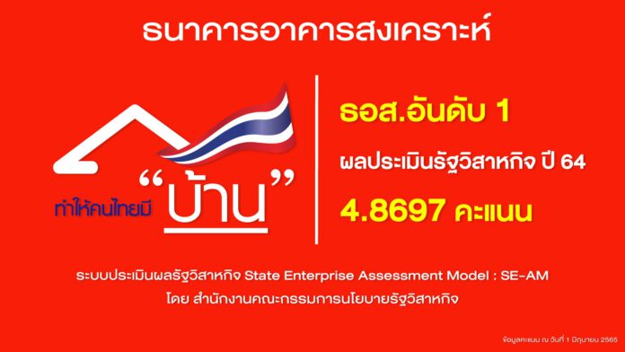 business highlight online : 2 มิถุนายน 2565 ธนาคารอาคารสงเคราะห์ คว้าคะแนนประเมินผลการดำเนินงานรัฐวิสาหกิจปี 2564 ด้วยคะแนน 4.8697 สูงสุดในทุกสาขาของรัฐวิสาหกิจทั้ง 51 แห่ง ตามที่สำนักงานคณะกรรมการนโยบายรัฐวิสาหกิจ (สคร.) ประกาศผลคะแนนประเมินผลเมื่อวันที่ 1 มิถุนายน 2565