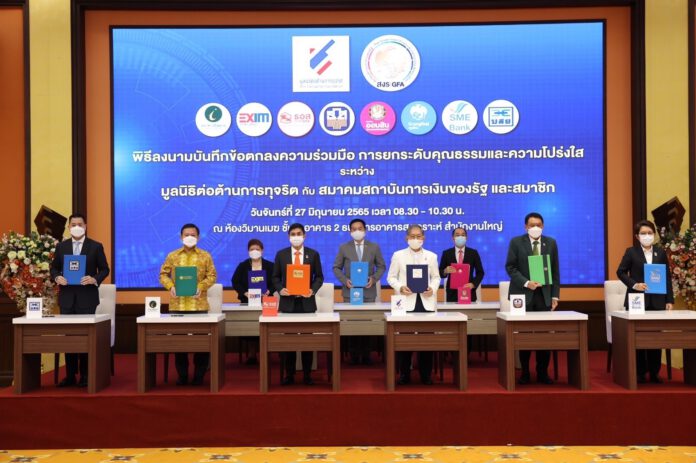 business highlight online : วันนี้ 27 มิ.ย. 65 มีพิธีลงนามบันทึกข้อตกลงความร่วมมือ การยกระดับคุณธรรมและความโปร่งใส ระหว่าง มูลนิธิต่อต้านการทุจริต กับสมาคมสถาบันการเงินของรัฐ และสมาชิก และการประกาศเจตจำนงการป้องปรามการทุจริตคอร์รัปชัน