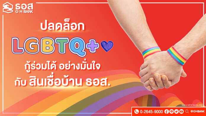 business highlight online : 27 มิถุนายน 65 ธนาคารอาคารสงเคราะห์ (ธอส.) ส่งเสริมสิทธิเสรีภาพและความเท่าเทียมทางเพศในสังคมไทย สนับสนุนให้กลุ่มบุคคลที่มีความหลากหลายทางเพศ (LGBTQ+) สามารถมีที่อยู่อาศัยเป็นของตนเองได้ง่ายยิ่งขึ้นตามพันธกิจ “ทำให้คนไทยมีบ้าน” เพื่อความสุข ความมั่นคง และคุณภาพชีวิตที่ดีของตนเองและคนในครอบครัว ล่าสุด ธอส. จึงได้ปรับปรุงเงื่อนไขในการให้สินเชื่อของธนาคาร โดยกำหนดให้กลุ่มบุคคลที่มีความหลากหลายทางเพศ (LGBTQ+) สามารถกู้ร่วมกันได้แล้วตั้งแต่บัดนี้เป็นต้นไป ครอบคลุมทุกผลิตภัณฑ์สินเชื่อ เช่นเดียวกับกรณีกู้ร่วมกับคู่สมรส พี่-น้อง และบิดา-มารดา ขณะเดียวกันยังได้เพิ่มทางเลือกในด้านสินเชื่อ เปิดตัวผลิตภัณฑ์ใหม่ สินเชื่อบ้าน MY PRIDE อัตราดอกเบี้ย 3 ปีแรกเท่ากับ MRR-2.40% ต่อปี ปัจจุบันเท่ากับ 3.75% ต่อปี (คิดจากอัตราดอกเบี้ย MRR ตามประกาศธนาคาร ปัจจุบัน MRR เท่ากับ 6.150% ต่อปี) ปีที่ 4 จนถึงตลอดอายุสัญญาเงินกู้อัตราดอกเบี้ยเป็นไปตามที่ธนาคารกำหนด ให้กู้สำหรับลูกค้าทั่วไปและลูกค้าที่มีสวัสดิการเงินกู้กับธนาคารเพื่อซื้อบ้าน ห้องชุด(คอนโดมิเนียม) หรือที่ดินเปล่าที่เป็นทรัพย์มือสองของธนาคาร ผ่อนชำระได้นานสูงสุด 40 ปี ยื่นคำขอกู้และทำนิติกรรมได้แล้วถึงวันที่ 30 ธันวาคม 2565 สอบถามรายละเอียดเพิ่มเติมได้ที่ ธอส. ทุกสาขาทั่วประเทศ หรือ GHBank Call Center โทร 0-2645-9000 หรือ www.ghbank.co.th, Facebook Fanpage ธนาคารอาคารสงเคราะห์ และ Application : GHB ALL