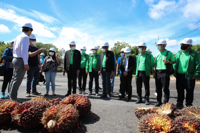 วันนี้ (28 สิงหาคม 2565) นายธนารัตน์ งามวลัยรัตน์ ผู้จัดการธนาคารเพื่อการเกษตรและสหกรณ์การเกษตร (ธ.ก.ส.) ลงพื้นที่เยี่ยมชมงานกลุ่มทักษิณ ปาล์ม ซึ่งดำเนินธุรกิจอุตสาหกรรมน้ำมันปาล์มครบวงจร ตั้งแต่ต้นกล้าปาล์มจนถึงโรงงานสกัดน้ำมันปาล์มดิบ มีการนำระบบบริหารที่ลดปริมาณของเสีย (Zero Waste) และส่งเสริมการหมุนเวียนทรัพยากรกลับมาใช้ใหม่ให้เกิดประสิทธิภาพสูงสุด โดยมีคณะผู้บริหารและเกษตรกรสมาชิก ให้การต้อนรับ ณ บริษัท ทักษิณ ปาล์ม (2521) จำกัด ตำบลท่าข้าม อำเภอพุนพิน จังหวัดสุราษฎร์ธานี