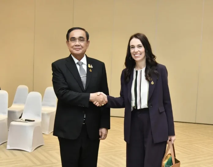 พล.อ.ประยุทธ์ จันทร์โอชา นายกรัฐมนตรีและรัฐมนตรีว่าการกระทรวงกลาโหม หารือทวิภาคีกับ น.ส.จาซินดา อาร์เดิร์น (H.E. Rt Hon. Jacinda Ardern) นายกรัฐมนตรีนิวซีแลนด์ โดยนายกรัฐมนตรี แสดงความยินดีที่นายกรัฐมนตรีนิวซีแลนด์มาร่วมการประชุมผู้นำเขตเศรษฐกิจเอเปคในครั้งนี้ ซึ่งไทยตั้งใจจะสานต่อความสำเร็จของการเป็นเจ้าภาพเอเปคของนิวซีแลนด์ครั้งล่าสุด