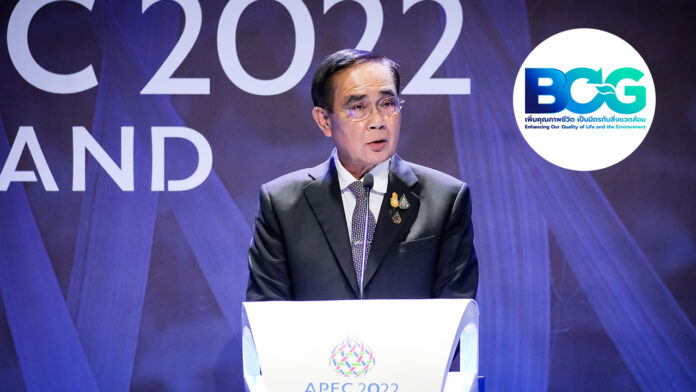 นายอนุชา บูรพชัยศรี รองเลขาธิการนายกรัฐมนตรีฝ่ายการเมือง ปฏิบัติหน้าที่ โฆษกประจำสำนักนายกรัฐมนตรี เปิดเผยว่า พลเอก ประยุทธ์ จันทร์โอชา นายกรัฐมนตรีและรัฐมนตรีว่าการกระทรวงกลาโหม ยินดีเป็นอย่างยิ่งที่ผู้นำเอเปคจากทุกเขตเศรษฐกิจได้ร่วมรับรอง ปฏิญญาผู้นำเขตเศรษฐกิจเอเปค ค.ศ. 2022 รวมทั้งได้ร่วมรับรอง “เป้าหมายกรุงเทพฯ ว่าด้วยเศรษฐกิจ BCG” หรือ “Bangkok goals on BCG Economy” ซึ่งทั้งในช่วงระหว่างการประชุมฯ และระหว่างการหารือแบบทวิภาคี ผู้นำเอเปคฯ ได้กล่าวชื่นชมความริเริ่มที่ประเทศไทยได้นำเสนอแนวคิดโมเดลเศรษฐกิจ BCG ในการประชุมฯ ครั้งนี้ และเชื่อมั่นว่าโมเดลเศรษฐกิจ BCG จะสร้างการเติบโตของประเทศ และตอบโจทย์เป้าหมายการพัฒนาที่ยั่งยืนของโลกได้อีกด้วย