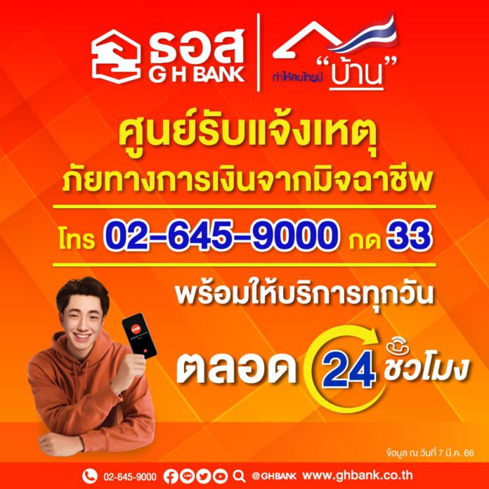 ธอส. เปิดศูนย์รับแจ้งเหตุภัยทางการเงินจากมิจฉาชีพ