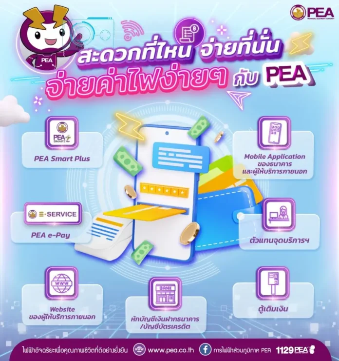 PEA อำนวยความสะดวกผู้ใช้ไฟฟ้าชำระค่าไฟฟ้าทางออนไลน์