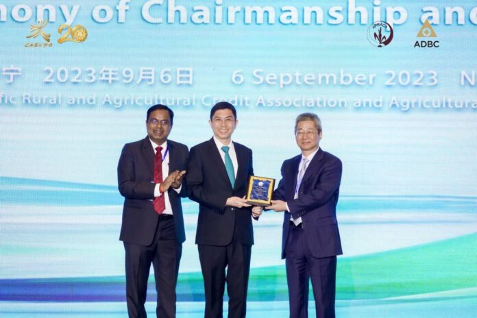 business highlight online : 6 กันยายน 2566 นายฉัตรชัย ศิริไล ผู้จัดการธนาคารเพื่อการเกษตรและสหกรณ์การเกษตร (ธ.ก.ส.) เข้าร่วมการประชุม APRACA Executive Committee (EXCOM) ครั้งที่ 76 และ APRACA General Assembly (GA) ครั้งที่ 23 ในโอกาสนี้ ได้มีพิธีการส่งมอบตำแหน่งให้กับผู้บริหารชุดใหม่ของสมาคมสินเชื่อการเกษตรและชนบทแห่งภาคพื้นเอเชียและแปซิฟิก (APRACA) ได้แก่ นาย QIAN Wenhui Chairman of Agricultural Development Bank of China (ADBC) เป็นประธาน APRACA (Chairman) และ นายฉัตรชัย ศิริไล ผู้จัดการ ธ.ก.ส. เป็นรองประธาน APRACA (Vice Chairman) ซึ่งจะมีวาระในการดำรงตำแหน่ง 2 ปี (2023 – 2025) เพื่อร่วมมือในการพัฒนาด้านสินเชื่อและการเติบโตของภาคธุรกิจเกษตรในภูมิภาคเอเชียแปซิฟิกสู่ความยั่งยืน ณ LiYuan Grand Metro Park Hotel เมืองหนานหนิง เขตปกครองตนเองพิเศษกว่างซีจ้วง สาธารณรัฐประชาชนจีน เมื่อวันที่ 6 กันยายน 2566