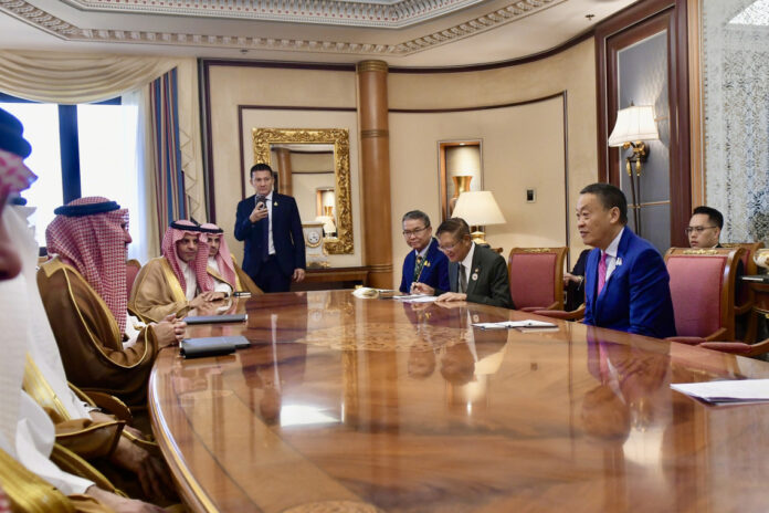 นายกรัฐมนตรี กล่าวแสดงความพร้อมของรัฐบาลในการขับเคลื่อนการลงทุนพลังงาน พร้อมเน้นย้ำศักยภาพทางเศรษฐกิจของไทย และสามารถเป็นจุดเชื่อมโยงในภูมิภาคให้กับซาอุดีฯ ได้ พร้อมเชิญชวนภาคเอกชนซาอุดีฯ เยือนไทยเพื่อศึกษาและหารือ เกี่ยวกับศักยภาพและความเป็นไปได้ในการส่งเสริมความร่วมมือระหว่างกันในด้านต่างๆให้เป็นรูปธรรมมากขึ้น