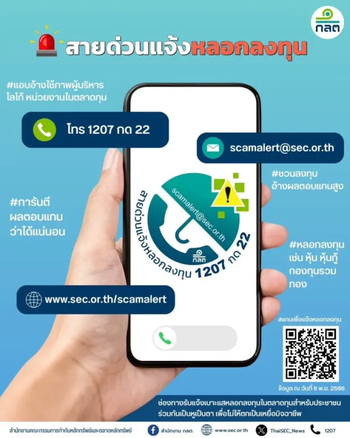 ก.ล.ต. เปิด “สายด่วนแจ้งหลอกลงทุน”