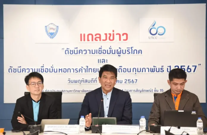 รศ.ดร.ธนวรรธน์ พลวิชัย อธิการบดีมหาวิทยาลัยหอการค้าไทยและประธานที่ปรึกษาศูนย์พยากรณ์เศรษฐกิจและธุรกิจ กล่าวถึงผลการสำรวจดัชนีความเชื่อมั่นของผู้บริโภคประจำเดือนกุมภาพันธ์ 67 ปรับตัวดีขึ้นต่อเนื่องเป็นเดือนที่ 7 เนื่องจากผู้บริโภคมั่นใจทั้งการเมืองและแนวทางช่วยเหลือลดค่าครองชีพทั้งไฟฟ้าและค่าน้ำมัน แต่ผู้บริโภคยังคงมีความกังวลเกี่ยวกับสถานการณ์เศรษฐกิจโลกชะลอตัว สงครามในตะวันออกกลางที่อาจยืดเยื้อบานปลาย อาจเป็นปัจจัยที่เพิ่มแรงกดดันของการฟื้นตัวของระบบเศรษฐกิจโลกเข้าสู่ภาวะเศรษฐกิจถดถอย ซึ่งส่งผลลบต่อการส่งออกของไทยและอาจมีผลกระทบในเชิงลบต่อกำลังซื้อของประชาชนในทุกภูมิภาคในอนาคต
