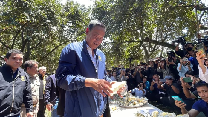 นายเศรษฐา ทวีสิน นายกรัฐมนตรี และรัฐมนตรีว่าการกระทรวงการคลัง ให้สัมภาษณ์ถึง การเดินทางลงพื้นที่ จ.จันทบุรี ว่า วันนี้ที่มาจันทบุรี เพราะเป็นช่วงต้นฤดูของทุเรียน และปฏิเสธไม่ได้ว่าทุเรียนเป็นพืชเศรษฐกิจที่สำคัญที่สุดพันธุ์หนึ่งของประเทศไทย ซึ่งปัจจุบันเราได้ส่งออกทุเรียนไปประเทศจีน คนจีนกินทุเรียนต่อคนต่อปี ประมาณ 0.7 กิโลกรัม คนไทยกิน 5 กิโลกรัม คนมาเลเซีย กิน 11 กิโลกรัม ต่อปี เพราะฉะนั้น ศักยภาพการเติบโตของตลาดยังไปได้อีกไกลมาก ในปัจจุบันนี้มีการพัฒนาการปลูกทุเรียนไปเยอะมาก รวมถึงการจัดเก็บ เป็นมืออาชีพมาก แต่ปัญหาก็มีอยู่บ้าง เรื่องการเก็บทุเรียนอ่อน ซึ่งวันนี้ทาง ปตท. มีนวัตกรรม มาเพื่อวัดให้รู้ว่า เป็นทุเรียนอ่อนหรือแก่ แล้วได้จดลิขสิทธิ์ทางปัญญา ไว้กับกรมทรัพย์สินทางปัญญา กระทรวงพาณิชย์ ซึ่งทุเรียนอ่อนเป็นสิ่งหนึ่งที่เราต้องระมัดระวัง ต้องทำให้ดี เพราะอาจจะทำให้เสียชื่อเสียงของประเทศ ทุกวันนี้เราเป็นผู้ส่งออกรายใหญ่ให้กับจีน คู่แข่งของเราคือเวียดนาม รวมถึงพบปัญหาการลักลอบ นำเข้ามาจากต่างประเทศ จึงได้สั่งการไปยังอธิบดีกรมศุลกากร ว่าต้องอย่าให้มีการทำเรื่องนี้เกิดขึ้น
