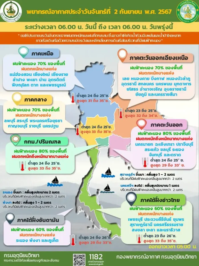 พยากรณ์อากาศรายภาค วันที่ 2 ก.ย.67