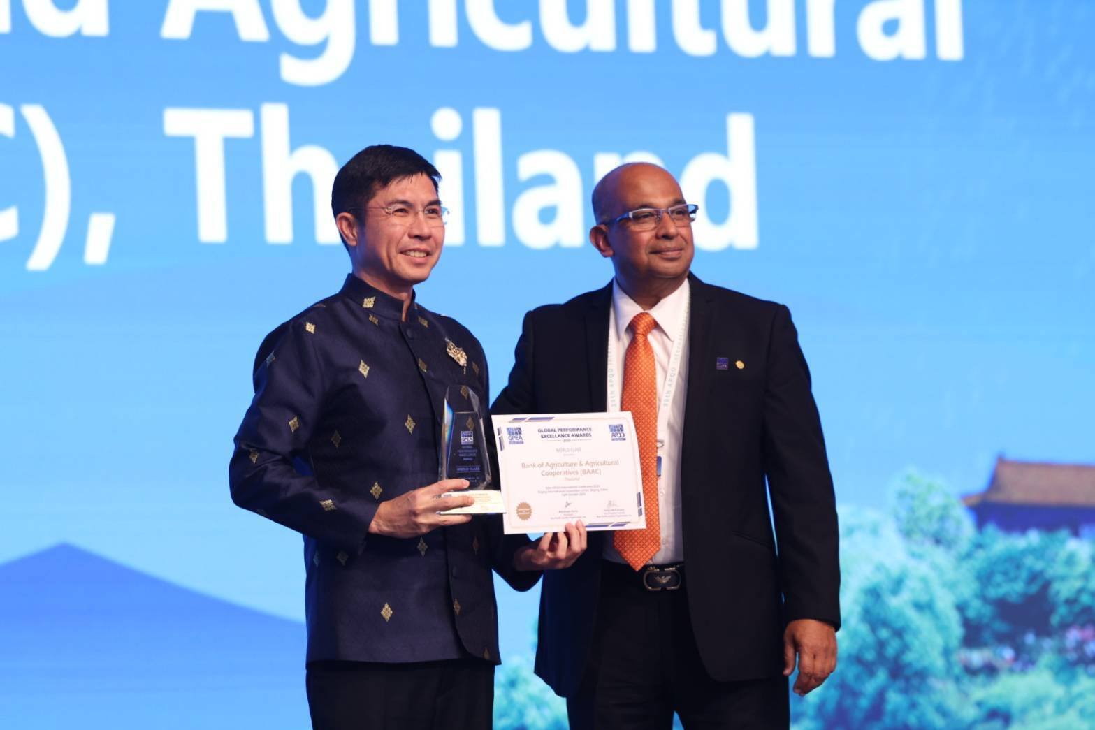 17 ตุลาคม 2568 องค์กรคุณภาพแห่งเอเชียแปซิฟิก (Asia Pacific Quality Organization : APQO) ประกาศให้ ธ.ก.ส. ได้รับรางวัลสุดยอดองค์กรแห่งความเป็นเลิศระดับโลก Global Performance Excellence Award 2025 ในระดับสูงสุด (World Class) สะท้อนความเป็นเลิศในการบริหารจัดการระดับสากล และพร้อมเดินหน้าพัฒนาองค์กรให้สามารถยกระดับคุณภาพชีวิตของเกษตรกร และเศรษฐกิจฐานรากของประเทศไทย ให้เติบโตไปข้างหน้าอย่างมั่นคงและยั่งยืนมากยิ่งขึ้นต่อไป