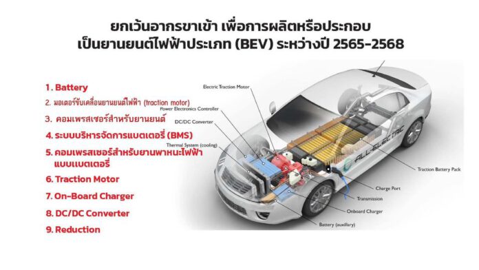 ดังนั้น กรมศุลกากร จึงได้ดำเนินการเสนอร่างประกาศกระทรวงการคลัง เรื่อง การยกเว้นอากรศุลกากรสำหรับชิ้นส่วนยานยนต์ไฟฟ้า โดยมีสาระสำคัญ ดังนี้