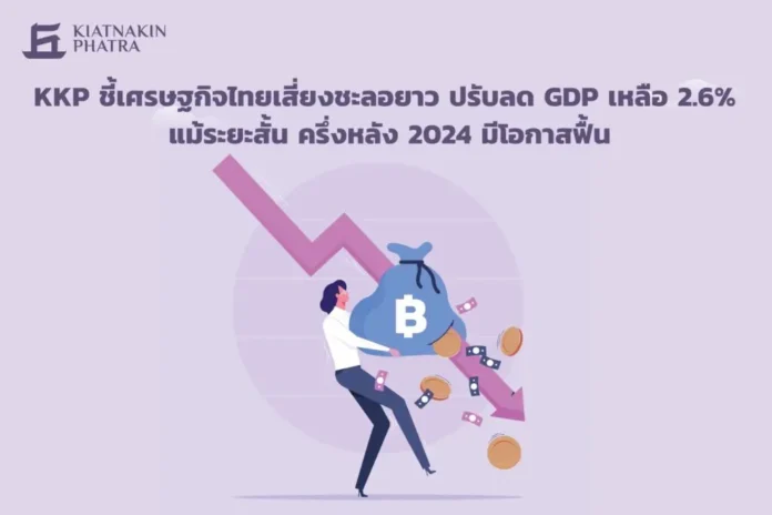KKP Research โดยกลุ่มธุรกิจการเงินเกียรตินาคินภัทร ประเมิน ปรับลดคาดการณ์เติบโต เศรษฐกิจไทยในปี 67 จะเติบโตได้ที่ระดับ 2.6% จากเดิมที่คาดว่าจะเติบโตได้ 3.7% (การประมาณการที่ไม่รวมผลของนโยบาย Digital Wallet ก่อนหน้านี้คือ 2.9%) และคาดว่าเศรษฐกิจจะโต 2.8% ในปี 68 ตามแนวโน้มศักยภาพการเติบโตของเศรษฐกิจไทยเริ่มลดต่ำลงจากปัญหาเชิงโครงสร้าง โดยการปรับประมาณการเกิดจากการเปลี่ยนแปลงสำคัญ 3 เรื่อง คือ 1) การนำผลของนโยบาย Digital Wallet ออกจากกรณีฐานในการประมาณการเศรษฐกิจ จากความไม่ชัดเจนและความไม่แน่นอนในการดำเนินนโยบาย 2) การปรับตัวเลขการผลิตภาคอุตสาหกรรมลงเพื่อสะท้อนปัญหาสินค้าคงคลังที่อยู่ในระดับสูงกว่าปกติและความสามารถในการแข่งขันที่ลดลง และ 3) รายได้ต่อหัวของนักท่องเที่ยวที่ปรับตัวลดลงต่ำกว่าช่วงก่อนการระบาดของโควิด -19 มากและมีแนวโน้มยังไม่กลับมาปกติ อย่างไรก็ตามคาดการณ์ว่าเศรษฐกิจไทยจะสามารถโตได้ดีขึ้นในช่วงครั้งหลังของปี 67เมื่อการเบิกจ่ายงบประมาณของภาครัฐที่จะกลับมาชดเชยการชะลอตัวในช่วงก่อนหน้า และการผลิตภาคอุตสาหกรรมและระดับสินค้าคงคลังกลับเข้าสู่ภาวะปกติ